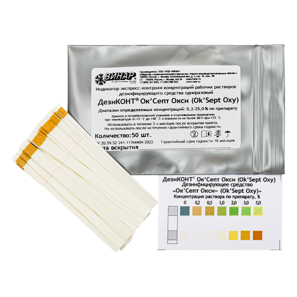 Индикатор экспресс-контроля концентраций рабочих растворов дезинфицирующего средства одноразовый ДезиКОНТ® Ок’Септ Окси (Ок’Sept Oxy), 100 – купить оптом