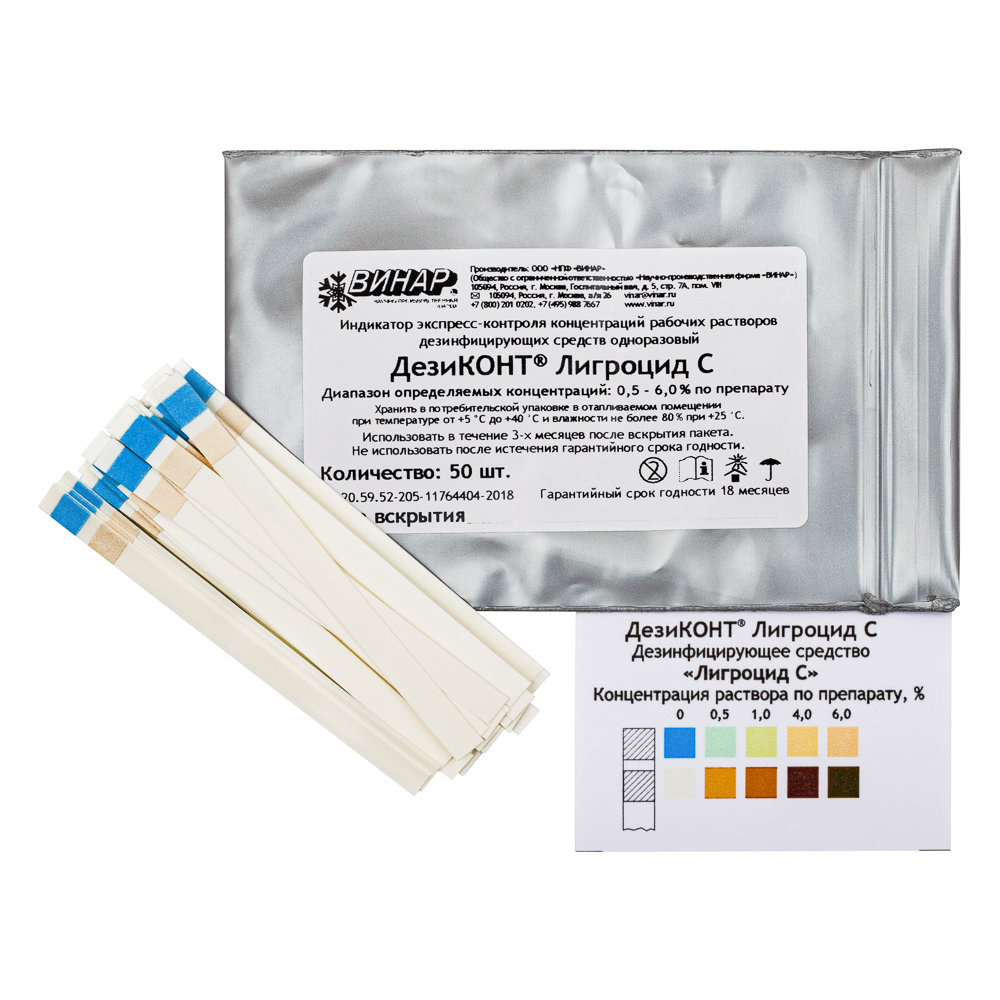 Индикатор экспресс-контроля концентраций рабочих растворов дезинфицирующего средства одноразовый ДезиКОНТ® Лигроцид С, 50