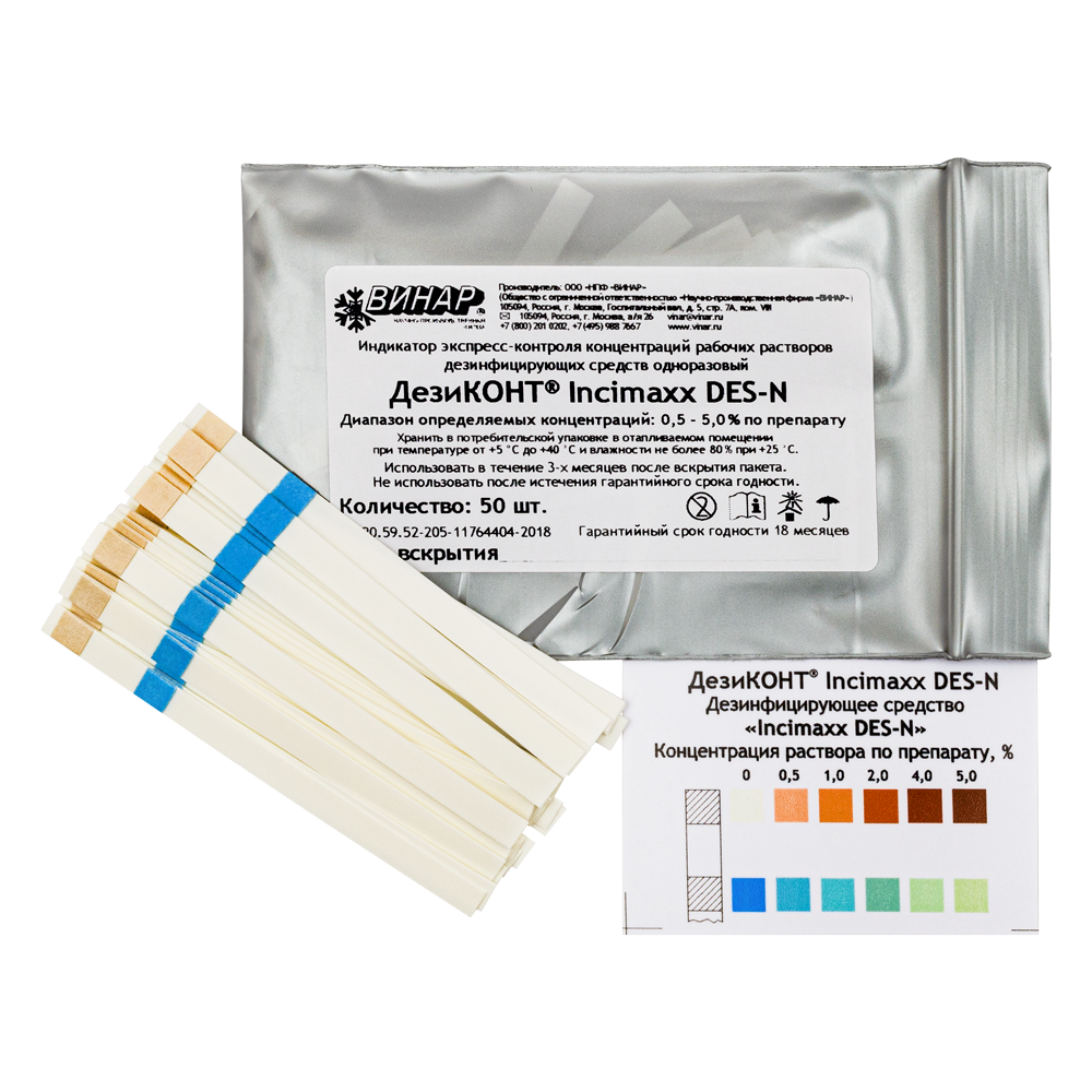 Индикатор экспресс-контроля концентраций рабочих растворов дезинфицирующего средства одноразовый ДезиКОНТ® Incimaxx DES-N, 50