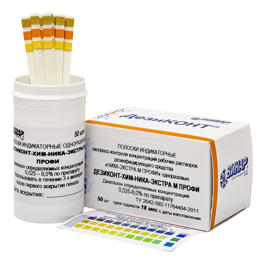 Полоски индикаторные экспресс-контроля концентраций рабочих растворов дезинфицирующего средства «Ника-экстра м профи», одноразовые «Дезиконт-хим-НИКА-ЭКСТРА М ПРОФИ», 50 – купить оптом