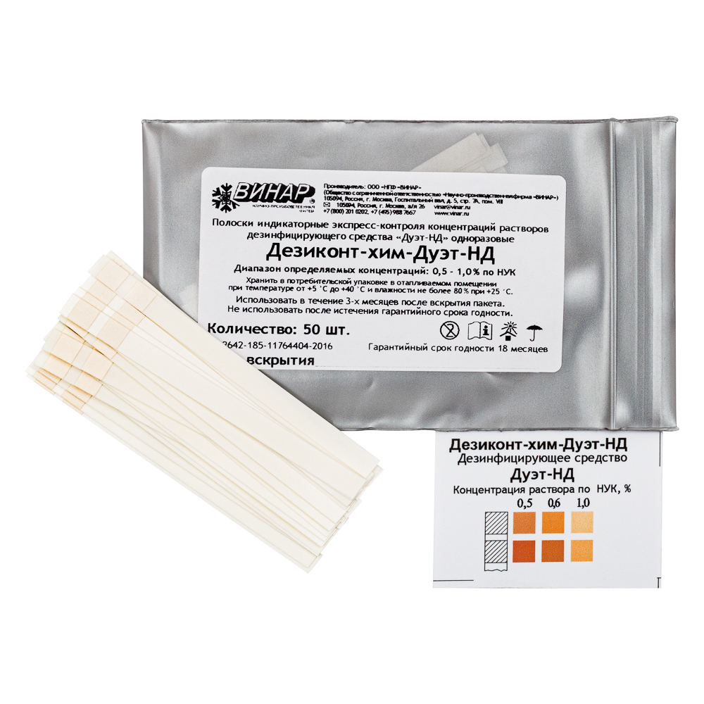 Полоски индикаторные экспресс-контроля концентраций рабочих растворов дезинфицирующего средства «Дуэт-НД», одноразовые «Дезиконт-хим-Дуэт-НД», 50 – купить оптом