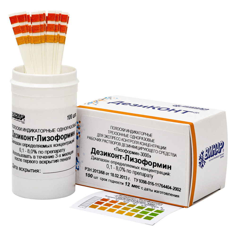 Полоски индикаторные трехзонные одноразовые для экспресс-контроля концентрации рабочих растворов дезинфицирующего средства «Лизоформин-3000» «Дезиконт-Лизоформин», 100 – купить оптом