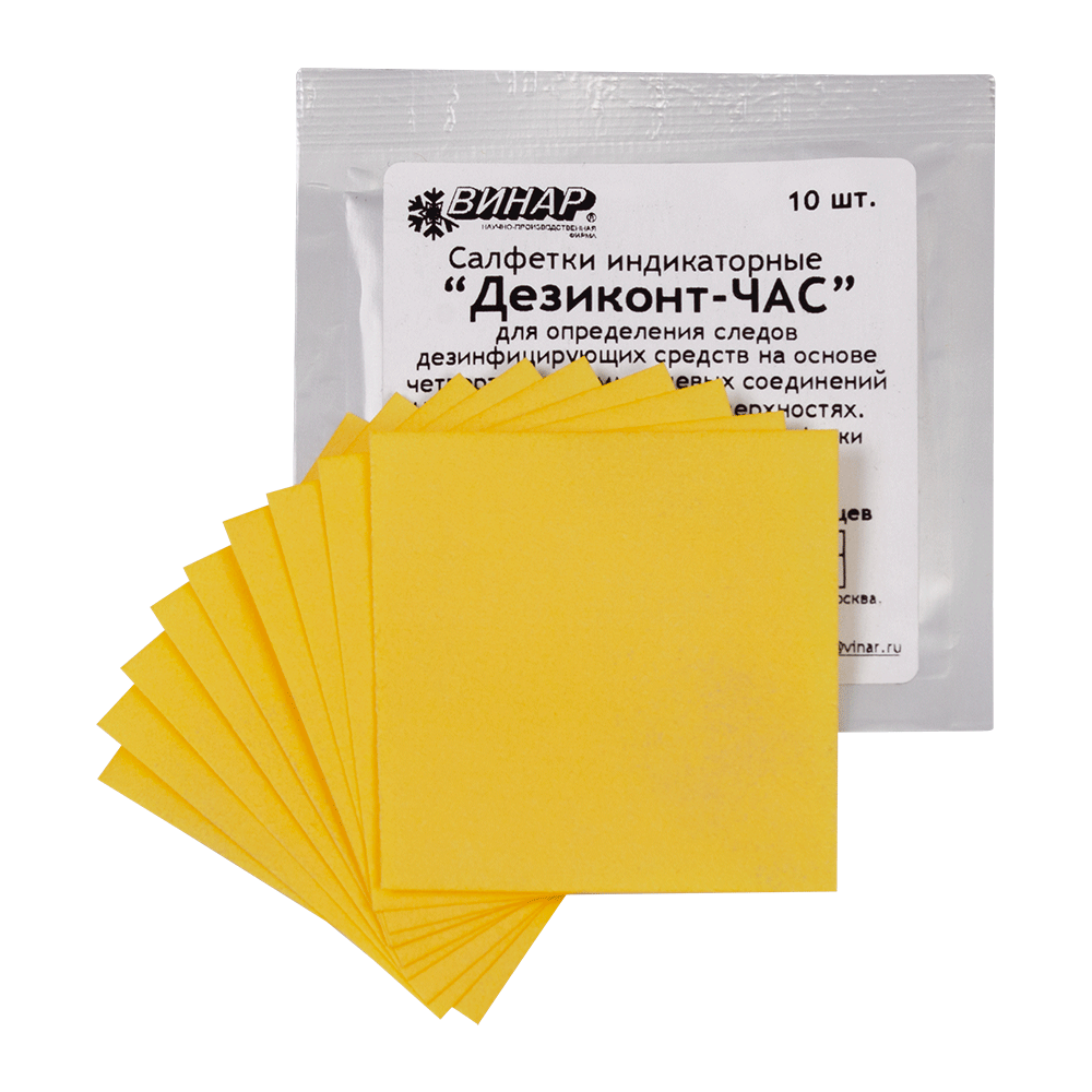 • Контроль осуществляется путём протирания поверхности изделий, обработанных дезинфицирующими средствами на основе ЧАС и щелочных компонентов, дезинфицирующих или моющих средств;