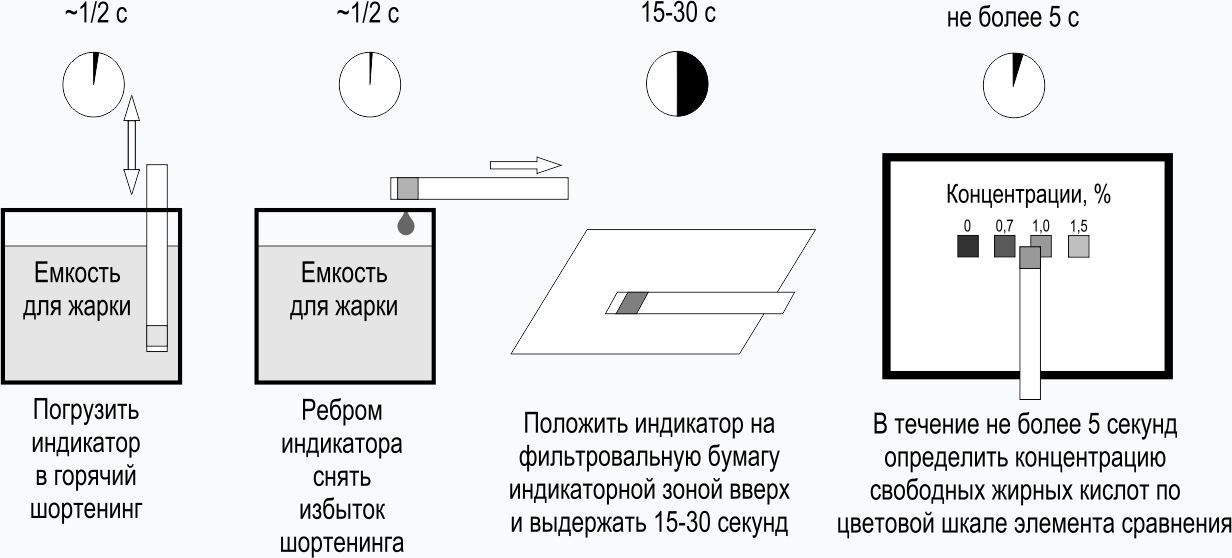 Продукт позволяет оперативно выявить повышение содержания свободных жирных кислот, что может указывать на ухудшение качества жира (масла) и необходимость его замены.