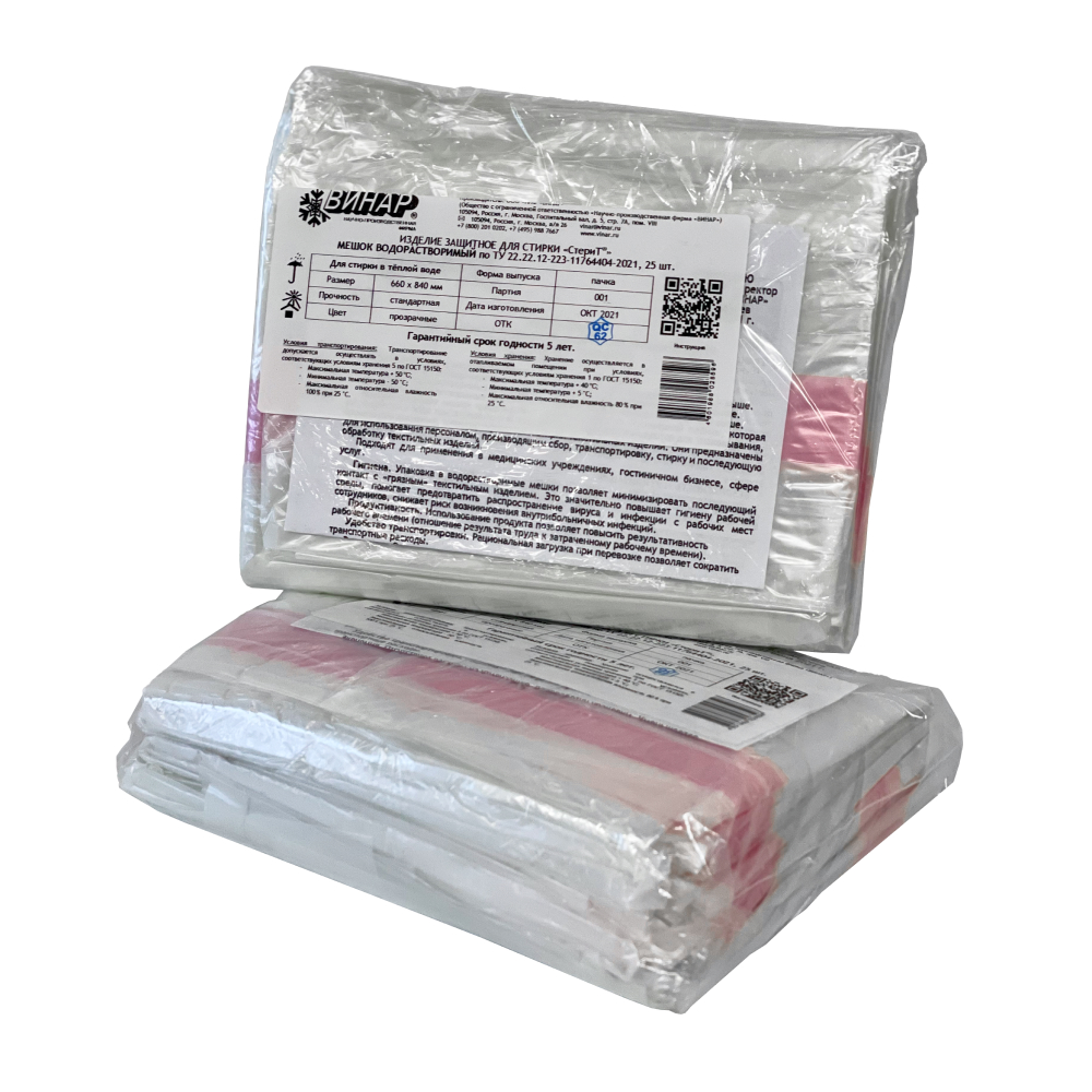 • Продуктивность: Использование водорастворимых мешков увеличивает эффективность рабочего времени и снижает трудозатраты на стирку и обработку текстильных изделий.