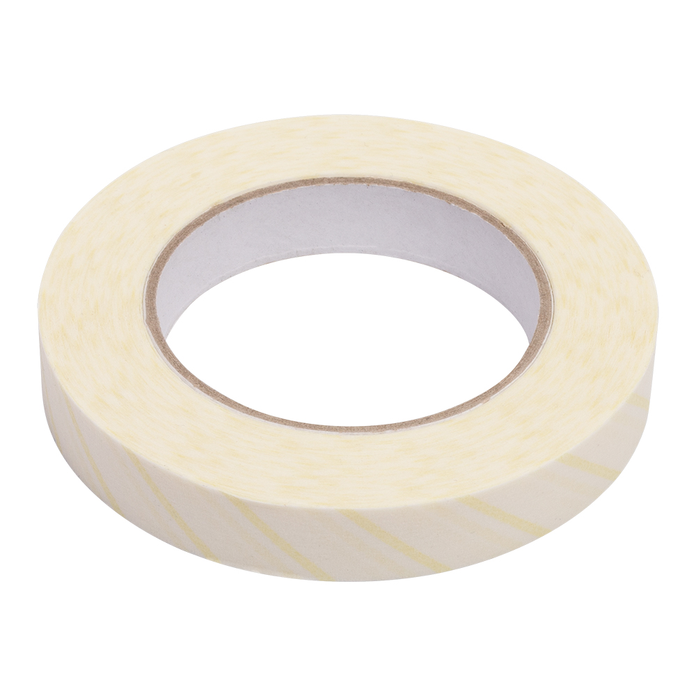 Индикаторная лента для паровой стерилизации представляет собой бумажный рулон с липким слоем с одной стороны и индикатором 1-го класса – с другой.